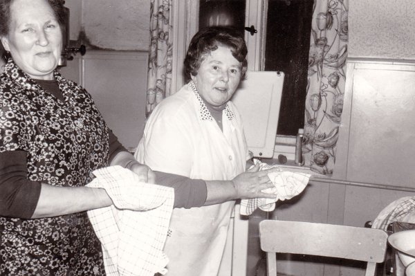 Meine Mutter bereitete in der kaum 11 Quadratmeter kleinen Küche hinter dem Gastraum solide Hausmannskost zu, von der noch Jahre nach ihrem Tod gesprochen wurde. Dabei waren die Möglichkeiten nicht nur aus heutiger, sondern auch aus damaliger Sicht bestürzend schlicht. Es gab lediglich einen elektrischen Herd, der später durch einen Gasherd ergänzt wurde. Sowohl die Küchenmöbel als auch ein Großteil der Einrichtung unserer Wohnung hatten nach dem Ende des Krieges mit der Mutter den Weg von Polen über Freital hierher gefunden. Das Geschirr wurde in einer Emailleschüssel abgewaschen, und der einzige Anklang an den Fortschritt fand sich in Gestalt eines Kühlschranks, der allerdings nur im Nebenraum Platz hatte.